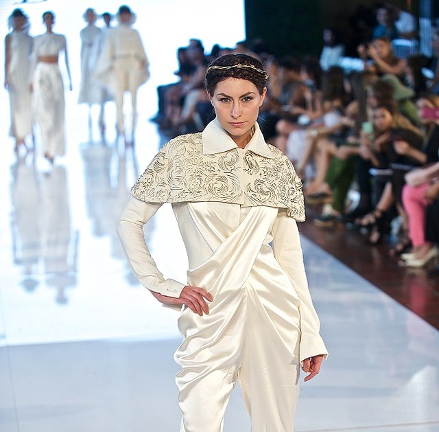 So Balyan designed a collection of all white clothes that were seen on the runway this last Sunday during LA Fashion Week at Union Station.